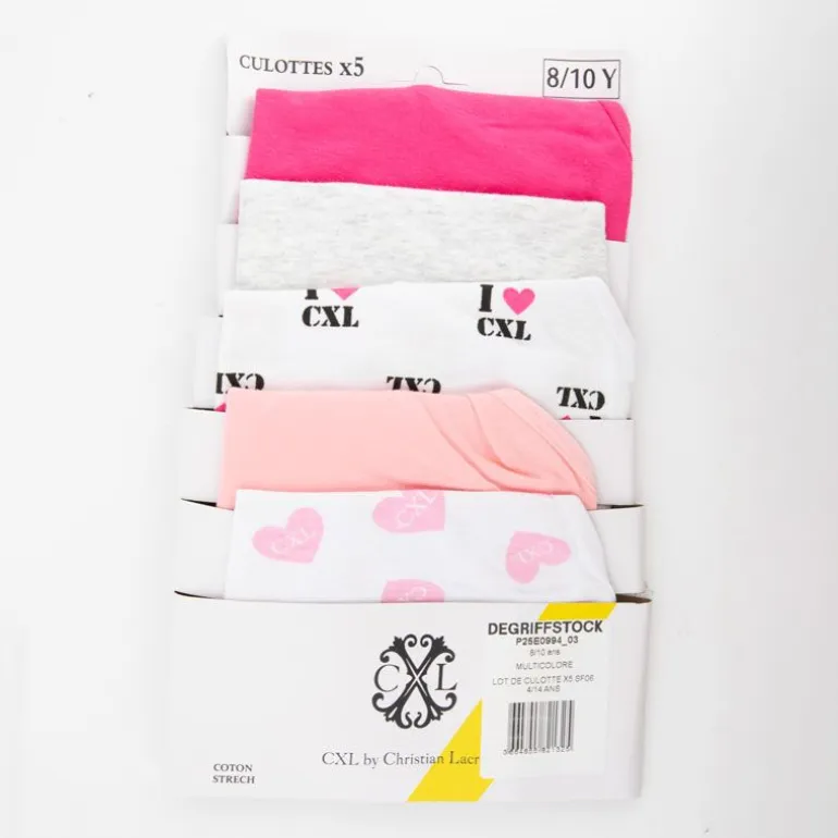 Lot de culotte x5 imprimé coeurs tons de roses et gris Enfant CXL BY CHRISTIAN LACROIX
