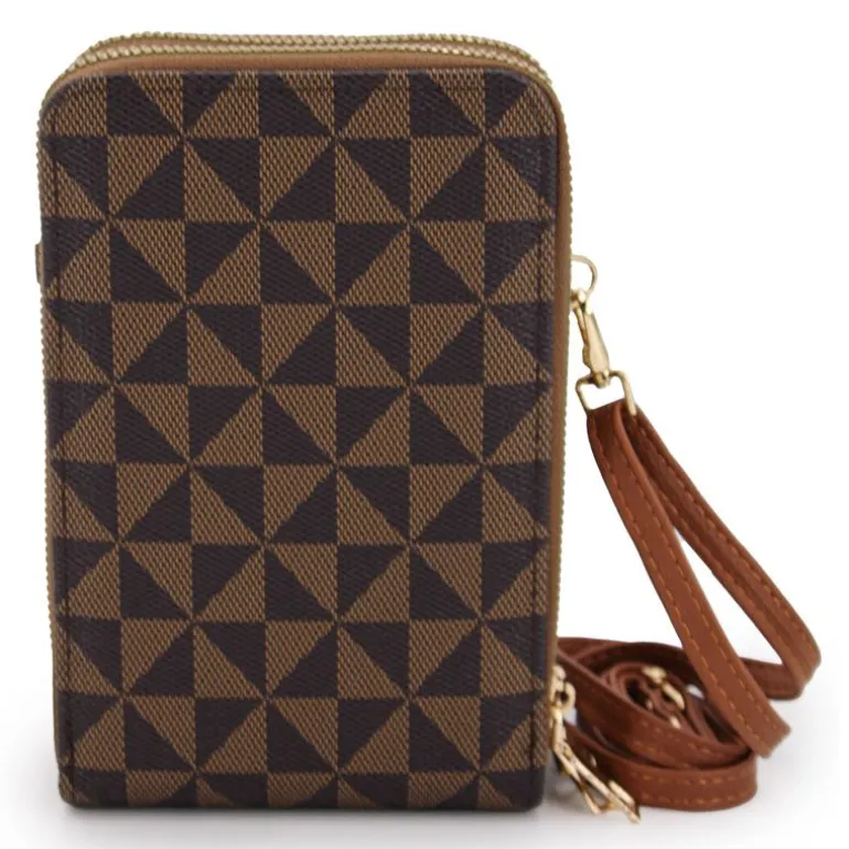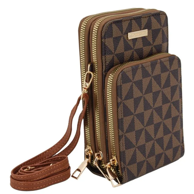 Pochette portable à motif triangle trois poches zippée