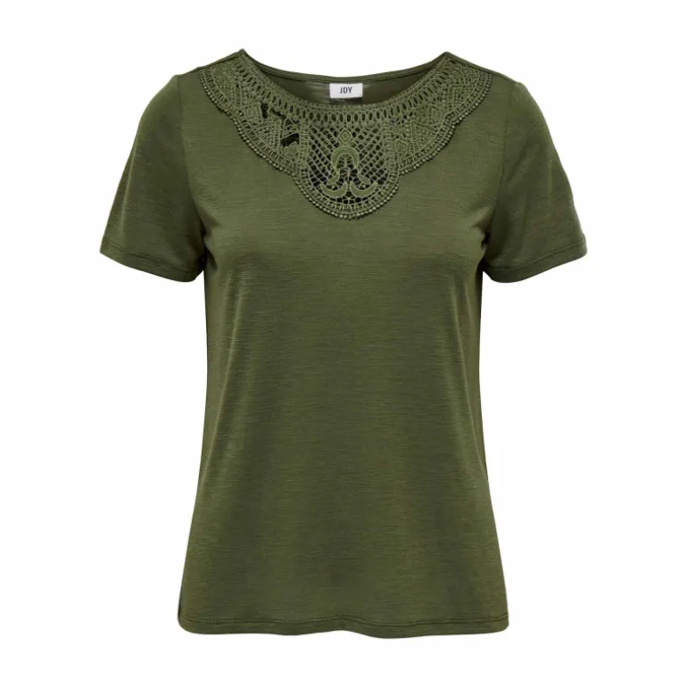 vous propose ce haut manches courtes col rond détail dentelle uni pour femme de la marque JDY à prix dégriffé.