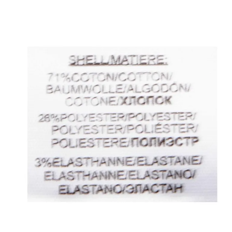 - 71% coton, 28% polyester, 3% élasthanne