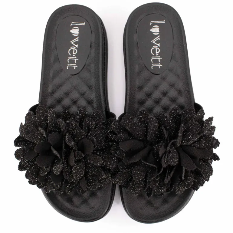 vous propose cette paire de mules/claquettes avec fleur sur le dessus pour femme de la marque LOVETT à prix dégriffé.