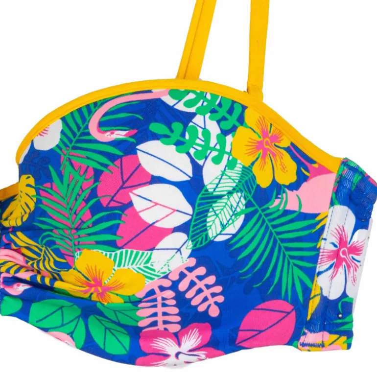 vous propose ce haut de maillot de bain bandeau imprimé tropical à bretelles amovibles pour femme de la marque CHERRY BEACH à prix dégriffé.