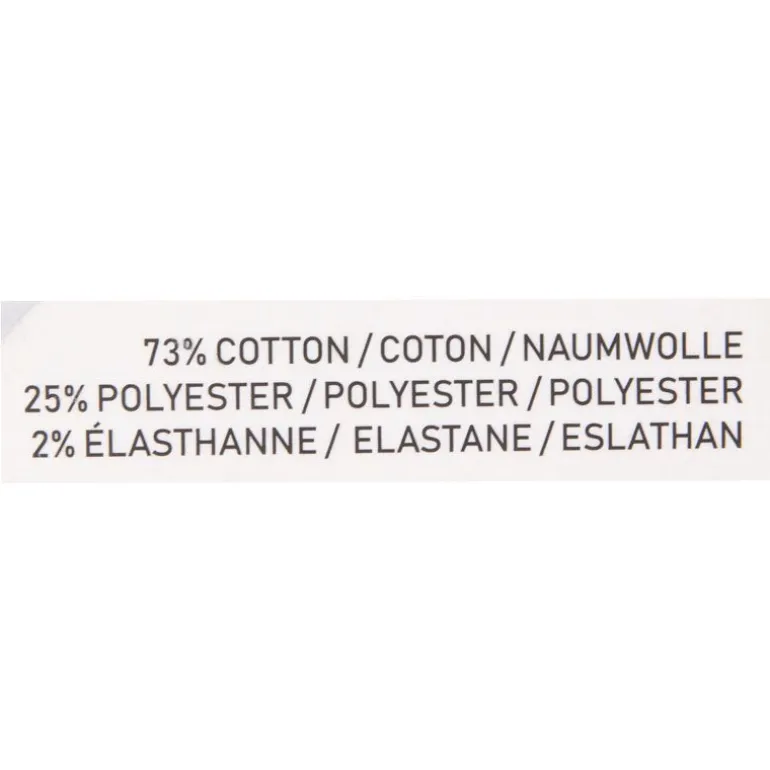 - 73% coton, 25% polyester, 2% élasthanne