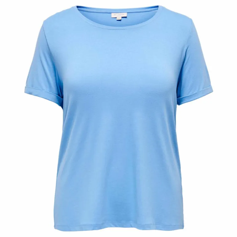 vous propose ce tee shirt manches courtes retroussées col rond pour femme de la marque ONLY CARMAKOMA à prix dégriffé.